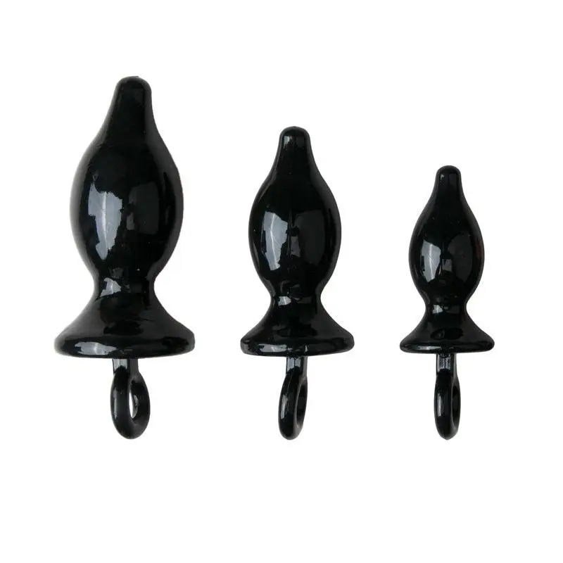 3 anaal pluggen, zwart, oplopend in formaat.