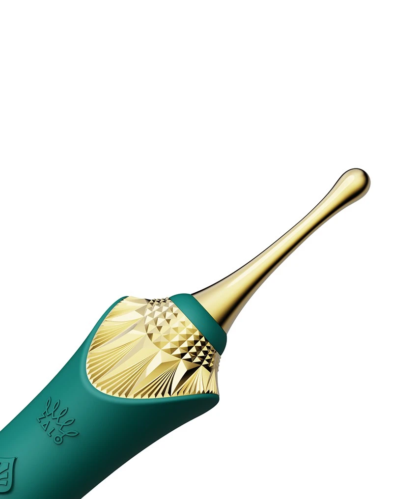 Het nieuwste lid van de ZALO-familie: Clitoral Stimulator Bess. De naam is geïnspireerd door de Egyptische god Bastet, beschermer tegen boze geesten en ziekten die verband houden met vrouwen. Bess ligt lekker in de hand en biedt de meest nauwkeurige stimulatie dankzij de innovatieve DirectPower-technologie. Het concentreert zich op de gevoelige punten, met motoromwentelingen tot 8000 keer per seconde, om een perfect orgasme te garanderen. De stimulator is gemaakt van premium lichaamsveilige siliconen, heeft een dubbele ultrakrachtige motor en maakt gebruik van fluisterstille trillingen. Het slanke G-spot opzetstuk is speciaal ontworpen om de G-spot te stimuleren. Het bladvormige opzetstuk op de stimulator zorgt voor een plagend en kietelend gevoel om de tepels of clitoris te stimuleren.